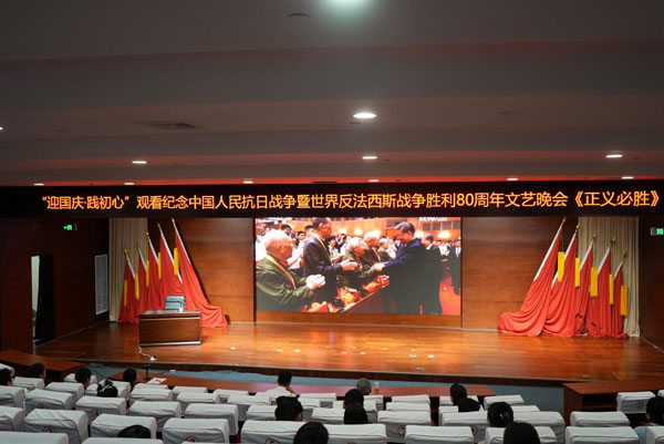 活动伊始,管理中心宣传教育科科长白雪同志为大家上了一堂生动的党课——红色经典电影《铁道游击队》赏析。铁道游击队的故事承载着革命先辈的热血与智慧,白雪同志的精彩解读,带领大家重新回溯了那段烽火岁月,并从那段传奇的历史中汲取奋进的力量,为活动奠定了深厚的红色基调。随后进行了“党建六维课堂”经典诵读环节,一篇篇经典作品由各位朗诵者深情演绎,让大家在文字的力量中感悟信仰之美,激昂的诵读声在每个人心中激荡。最后,大家一同观看了纪念中国人民抗日战争暨世界反法西斯战争胜利80周年文艺晚会《正义必胜》,这场视听盛宴让大家在回望历史中坚定前行,深化了对初心使命的认知。