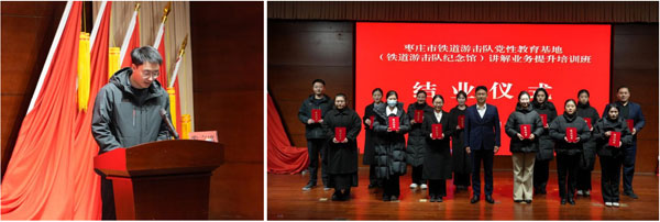 在27日下午的结业仪式上,3名学员代表分享了学习感悟,翁军同志为13名参训学员颁发了结业证书。枣庄市铁道游击队党性教育基地精心策划了此次培训班,旨在秉持开门办学、资源共享、以人为本的思路格局,通过立足基地讲解工作实际,搭建馆院合作、校企合作平台。不断整合学习资源,将集中培训与日常工作实训有效结合,进一步优化培育红色宣讲人才工作模式。(宣教科)