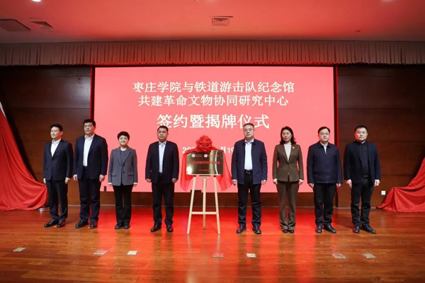 仪式上,枣庄学院与铁道游击队党性教育基地管理中心签署了合作协议,高峰、巴海峰共同为协同研究中心揭牌。